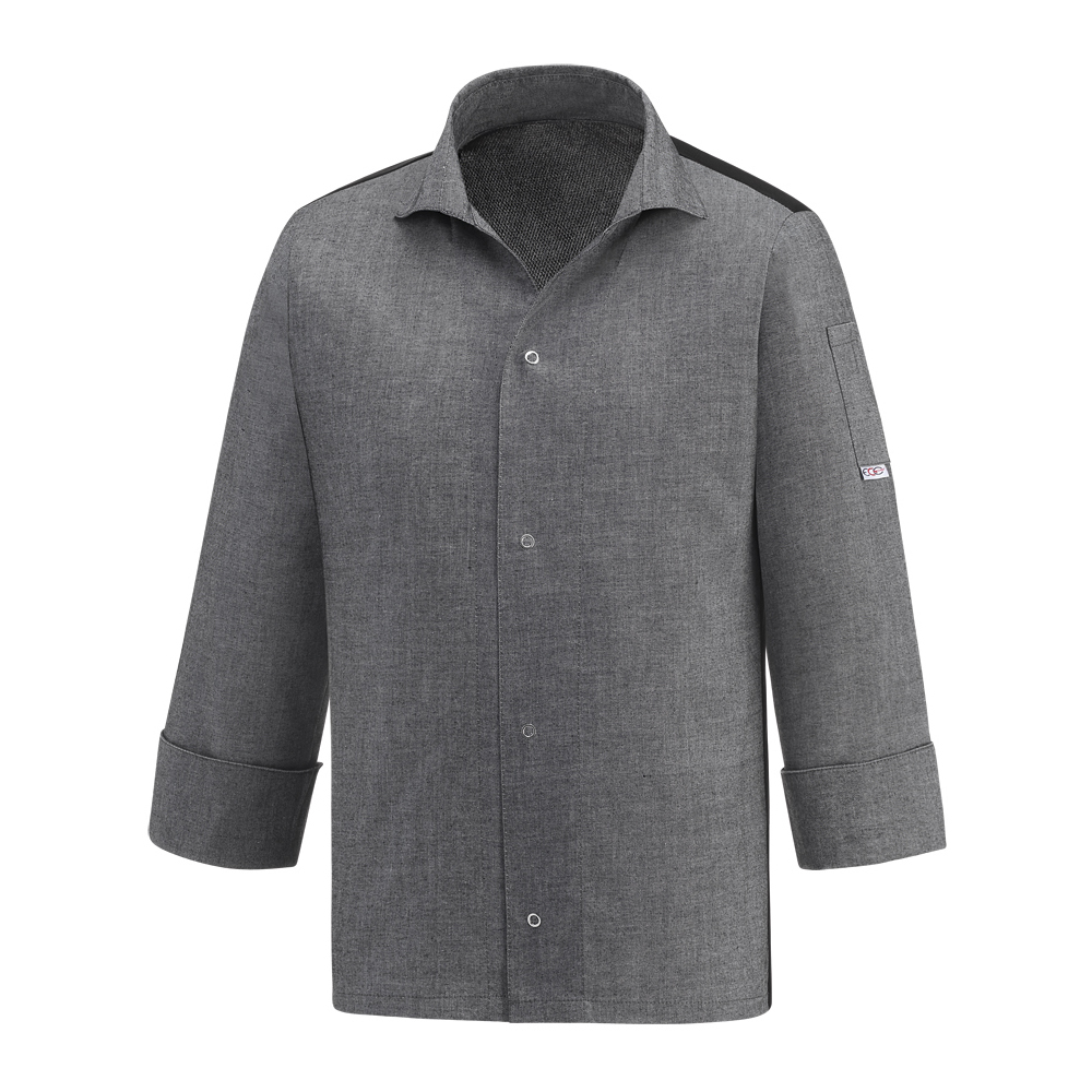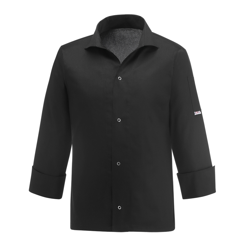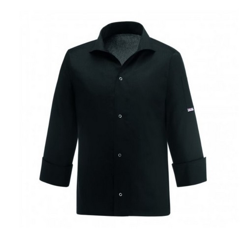 Egochef crna kuharska jakna VIP je poput košulje, s dugim rukavima.