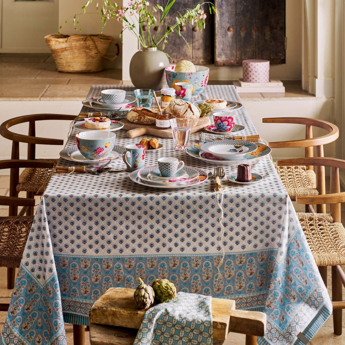 Dizajn: nježna plava boja s diskretnim zlatnim rubom i prepoznatljivim cvjetnim motivima